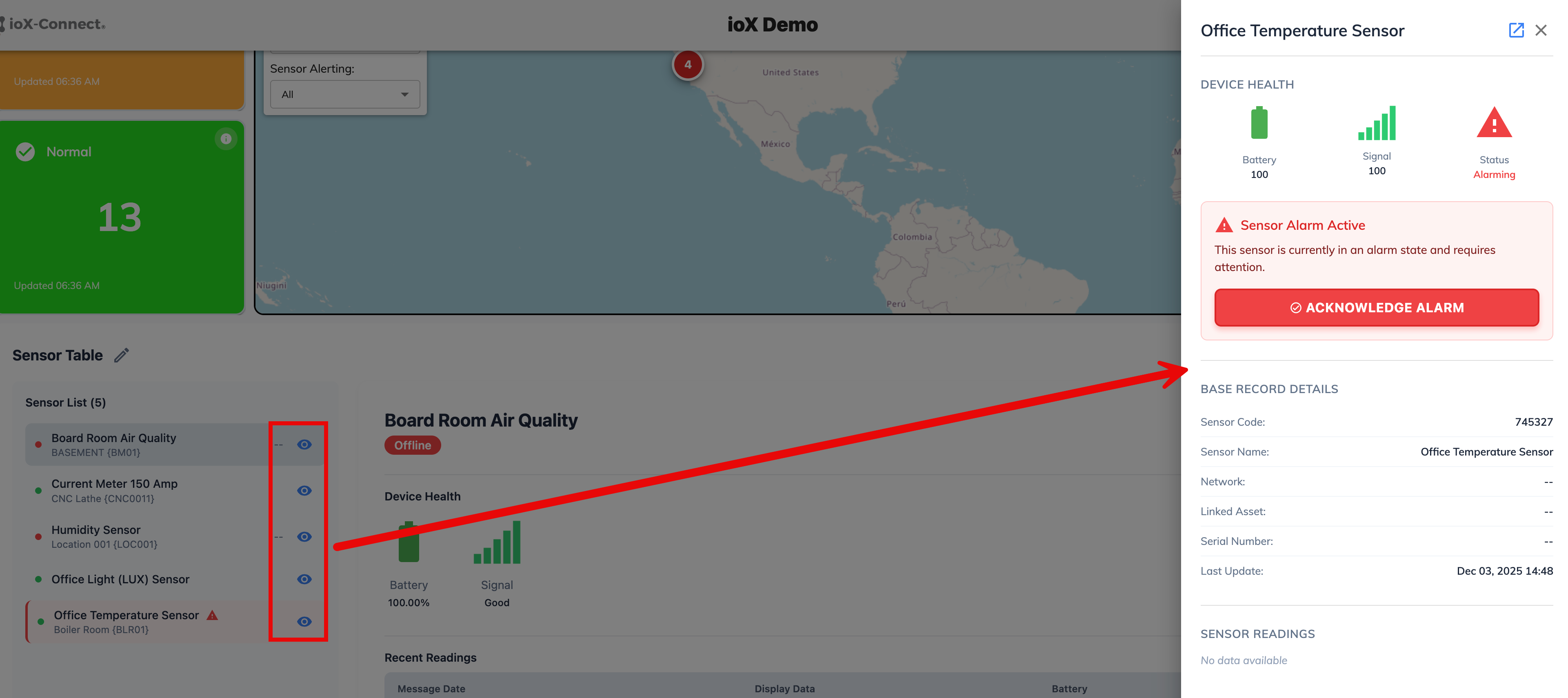 We’ve added a new quick view drawer for multiple widgets. Look for the eye icon on a widget—clicking it opens a side panel that shows key device information instantly, without leaving your current page. This lets you review sensor details without navigating to the full sensor record, improving the user experience and reducing the number of clicks required.