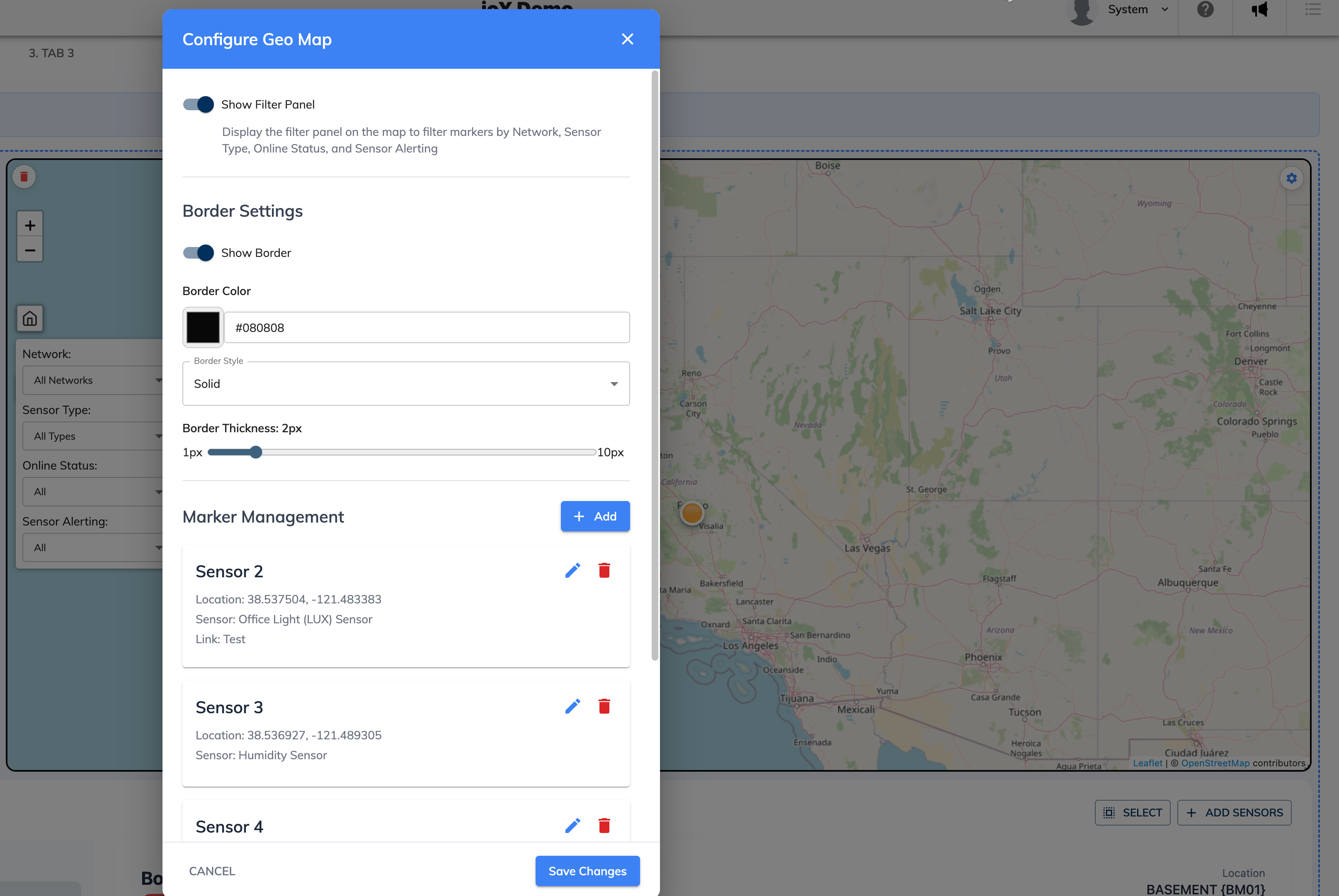 We’ve added a new GEO Map widget to IoT Dashboards. This widget lets you place markers on a map, visualize device clusters clearly, and add navigation links inside map pins for advanced navigation and seamless linking between dashboards.