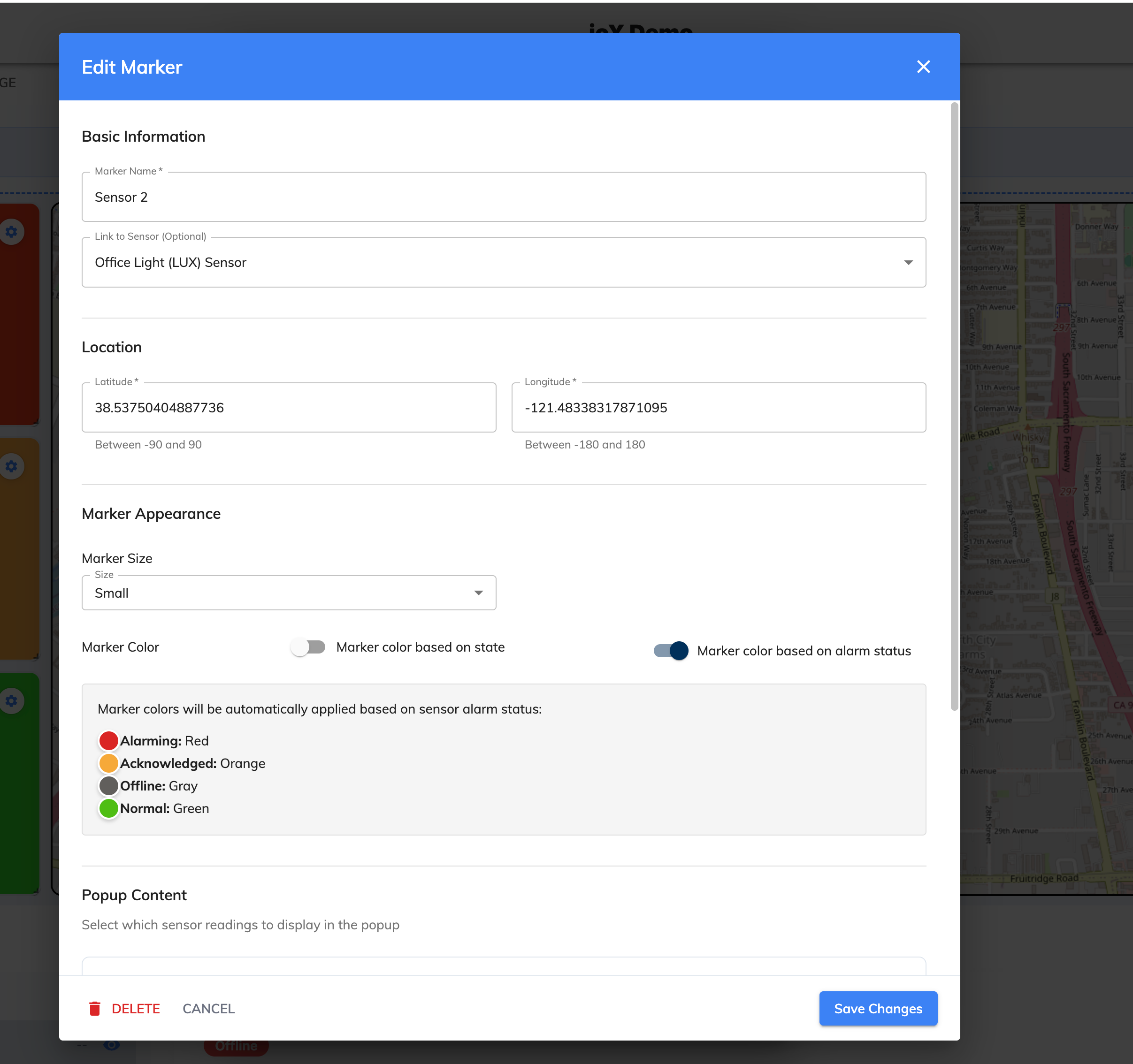 - For the Floor Plan Map widget, the device pins when clicked does not display the sensor details like name, sensor code etc. We're working on a different display dialog to solve this.
